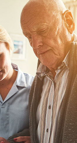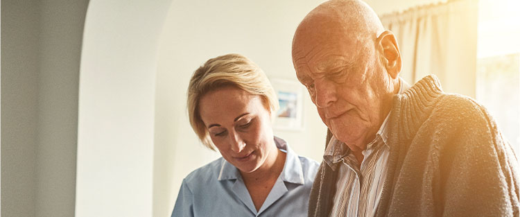 Actor portrayals of caregiver helping a man to walk